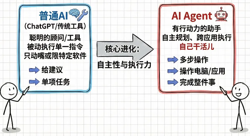 以前是你操作AI工具干活,而Agent则是主动帮你控制各种工具干活,这也是小龙虾(OpenClaw)能够爆火的重要原因。