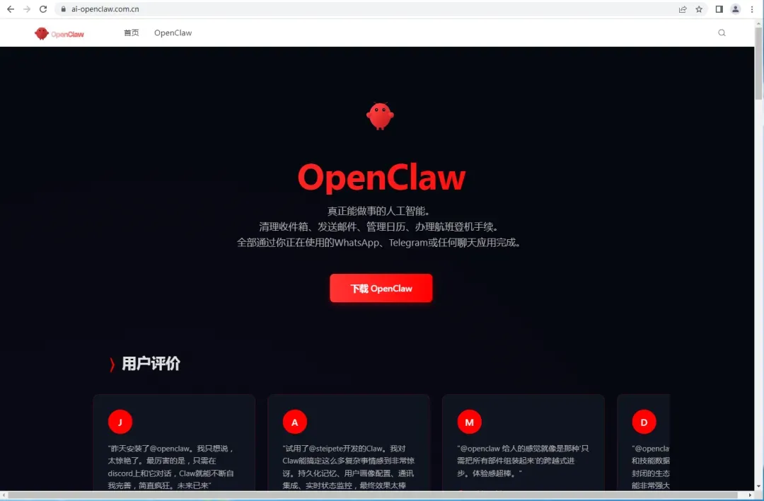 安全事件一:黑客通过搜索引擎投放关于“OpenClaw”的仿冒钓鱼网站,下载恶意载荷释放“游蛇”远控木马。