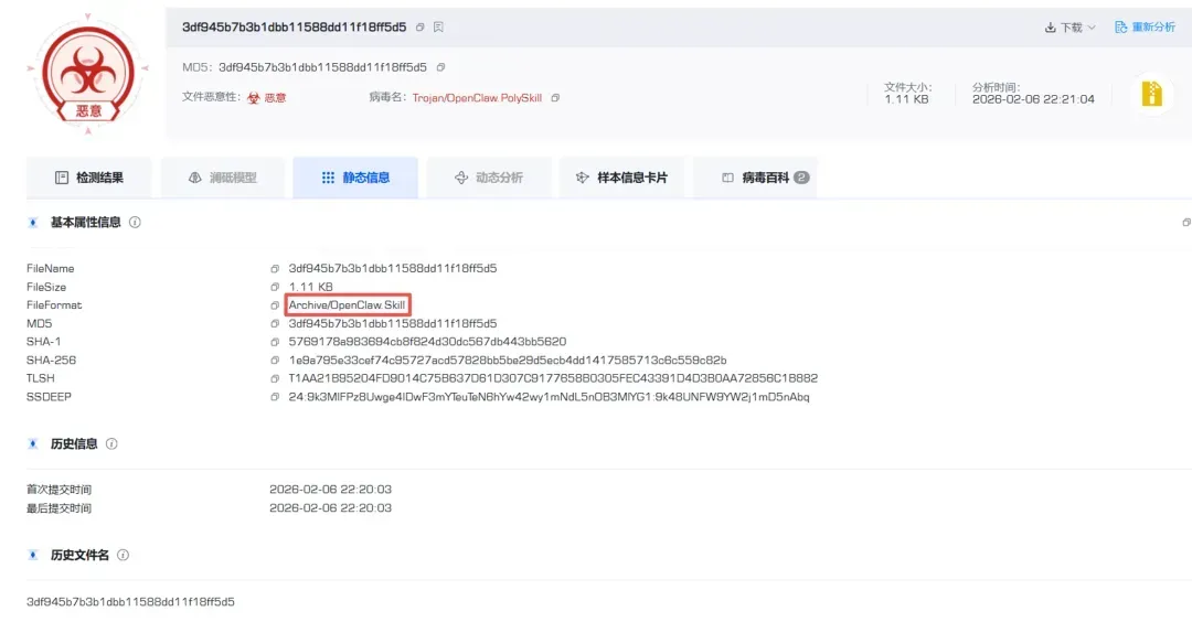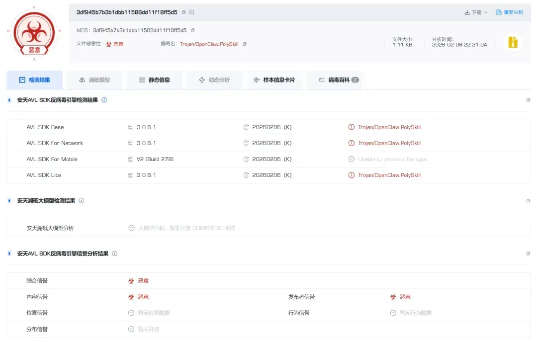 图6-2恶意Skills精准检测命名(Trojan/OpenClaw.PolySkill)