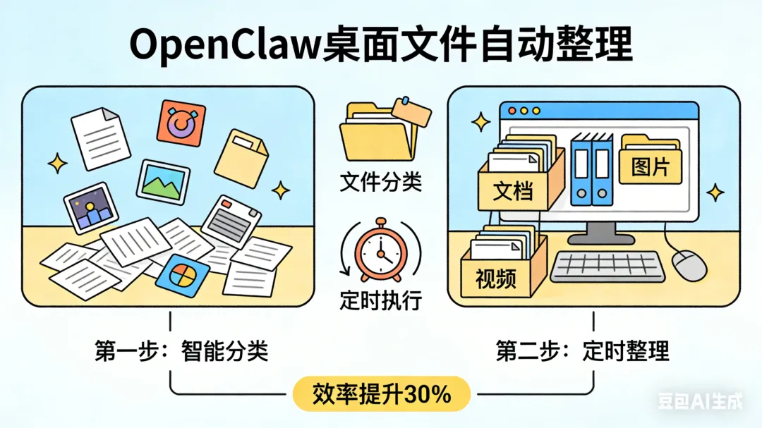 桌面文件堆得乱七八糟,挨个分类整理要耗上半小时;每周固定做报表,复制粘贴数据、反复核对格式,做起来又烦又容易错;会议纪要整理、邮件分类归档、日常流程上报,全是机械又耗时间的琐碎工作,明明没做多少核心业务,却天天忙到卡点下班,偶尔还得加班赶进度。