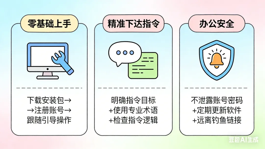 刚开始用不用急于尝试复杂流程,先从文件整理、邮件分类、数据复制粘贴这类最基础的重复工作练手,熟悉AI的指令逻辑和操作规律后,再慢慢叠加报表、纪要这类稍复杂的任务,上手更快,也能避免操作失误。