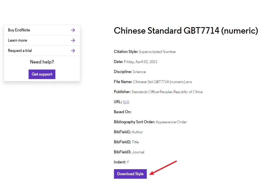 添加 Chinese Std GBT 7714 样式