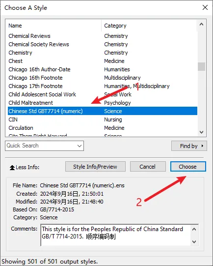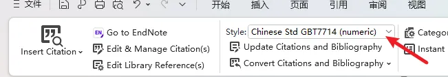 在弹窗中找到Chinese Std GBT7714 (numeric),并选择它!