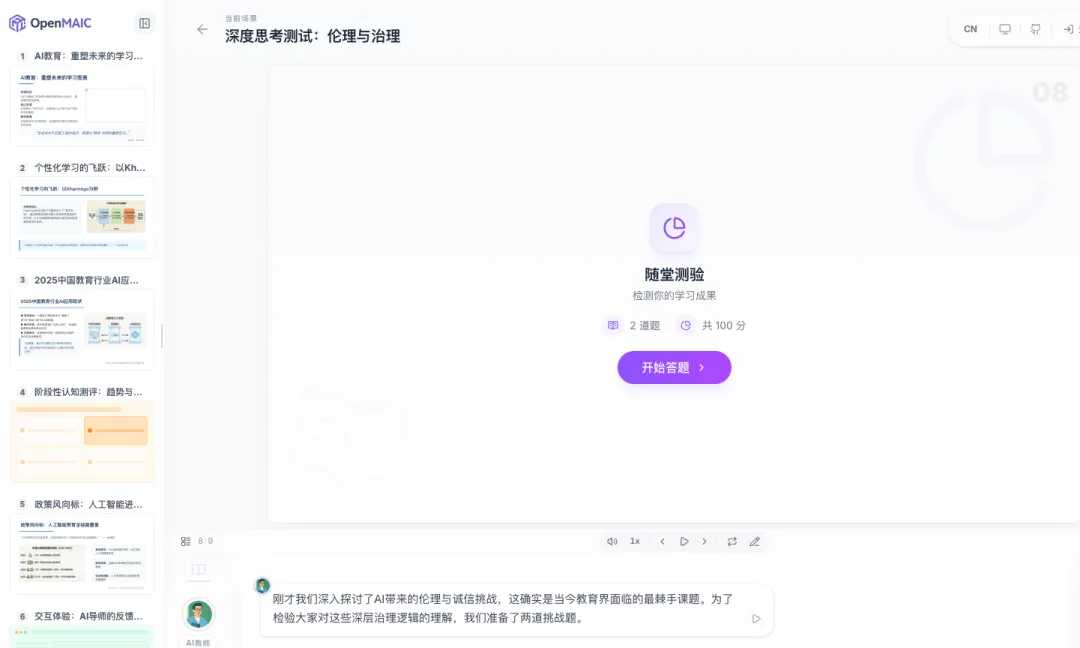 体验地址:https://open.maic.chat/ 开源地址:https://github.com/THU-MAIC/OpenMAIC