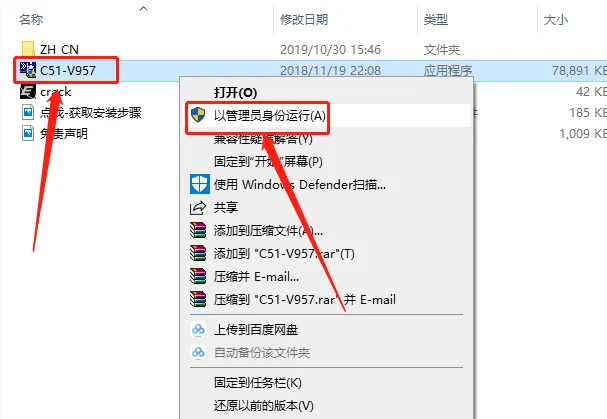 3.鼠标右击【C51-V957】安装程序,选择【以管理员身份运行】。