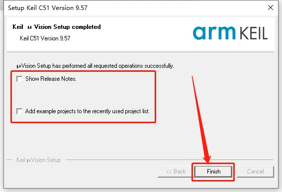 10.安装进度走完后取消勾选下图所示的选项,然后点击【Finish】。
