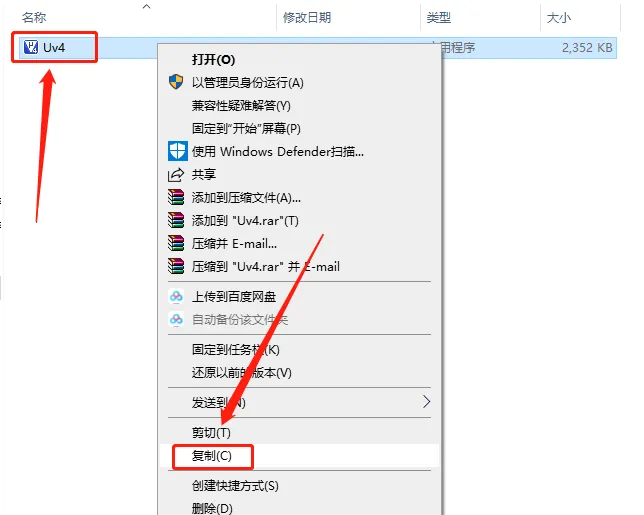 12.鼠标右击【Uv4】文件选择【复制】。