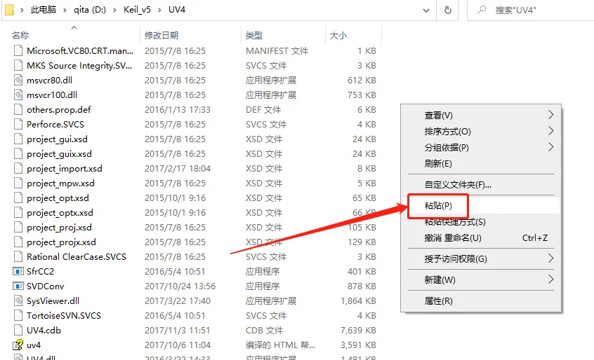 14.在打开的文件夹空白处,鼠标右击【粘贴】刚才复制的文件。