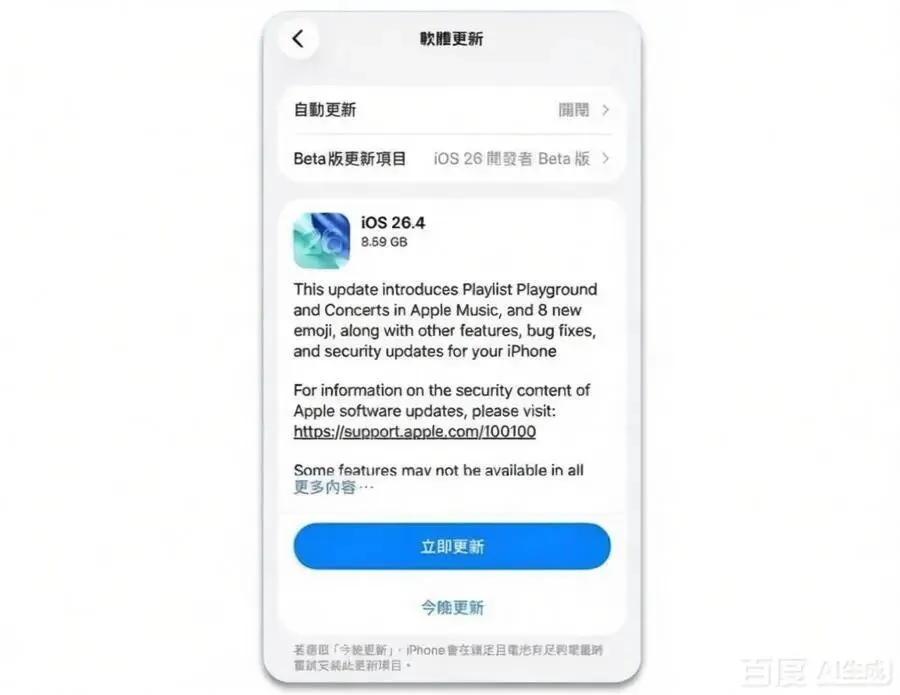 从版本节奏看苹果的产品规划,关注苹果系统的用户不难发现,当前版本号的推进速。iOS 26.4进入正式版发布阶段,意味着两个信号已经相当明确:其一,该版本极有可能在下周面向全体用户推送,这符合苹果通常在周三发布系统更新的习惯;其二,当iOS 26.4完成部署后,iOS 26.5的测试周期将随之启动,开发者预览版和公测版预计会在未来数周内陆续释出。