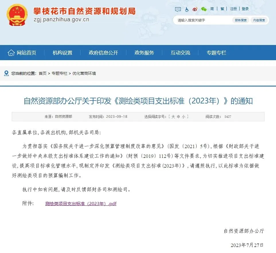 23版点击下载→23版《测绘类项目支出标准》