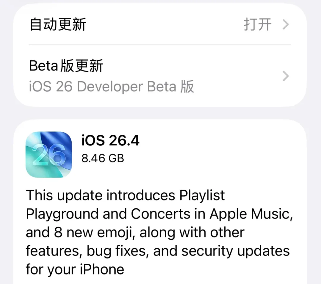 那么问题来了,大家都更新iOS 26.4 RC版了吗?一起来说说看吧。