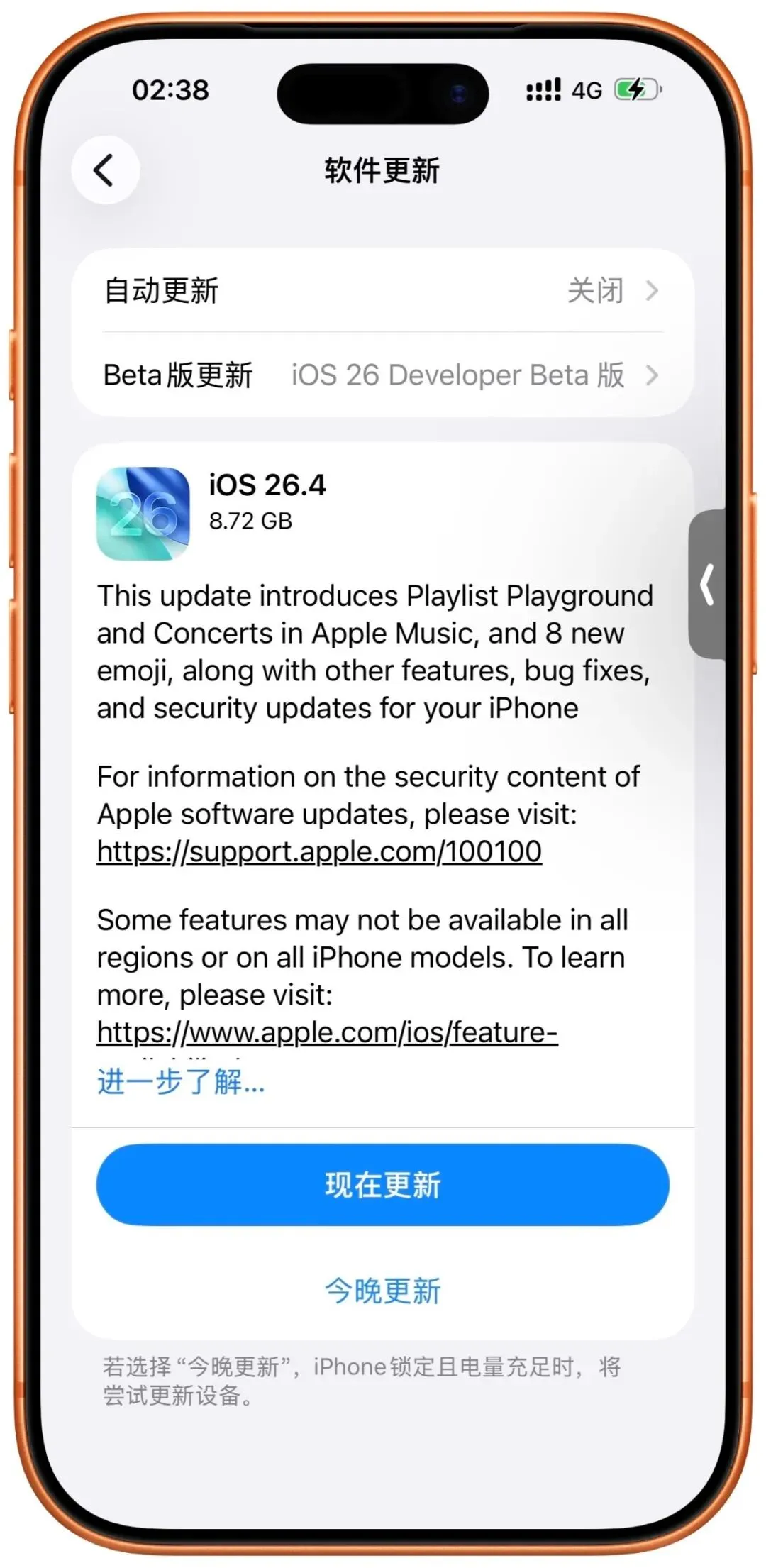 据了解,近期苹果向开发者和公测用户推送了iOS 26.4 RC(Release Candidate)版本,距离上次Beta更新仅隔9天。
