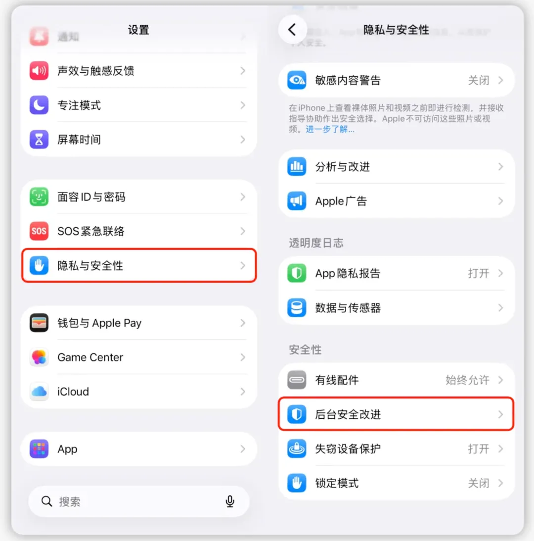 苹果这次放出的更新,表面看不大,实际优先级并不低,3 月 17 日Apple 上线了首批 Background Security Improvements,也就是后台安全改进,这类更新不是传统意义上的完整系统升级,而是夹在常规版本之间发放的小型安全补丁,主要针对 Safari、WebKit 以及部分系统库这类更适合快速修补的组件,Apple 说明,这项机制从 iOS 26.1、iPadOS 26.1 和 macOS 26.1 之后开始支持,入口放在设置里的隐私与安全性页面中