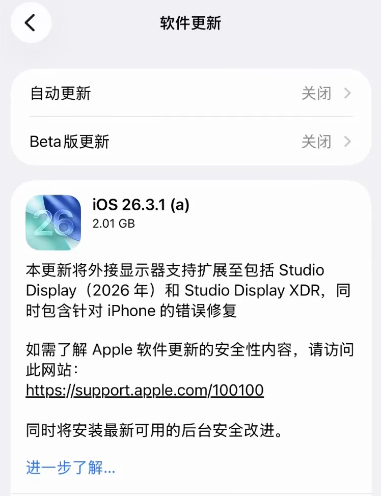 这也意味着,大多数用户不用纠结它有没有新功能,该装就装,因为这种更新不是让手机更好玩,而是尽量把风险压低,尤其对经常用 Safari、频繁打开外部链接,或者平时不太注意网页来源的人来说,这类补丁往往比一个新动画或者一个新开关更重要,后台安全改进还支持自动安装,如果你把这个选项关掉,后续相关修复就只能等到下一个常规系统版本里再一起拿到