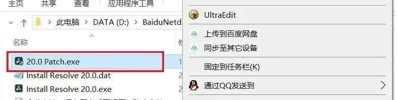 17、找到粘贴的【20.0 Patch】应用程序,再右键选择【以管理员身份运行】