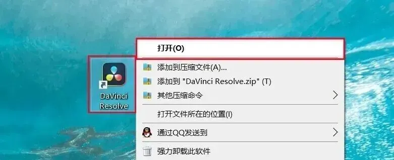 20、回到桌面,右键桌面上的【DaVinci Resolve软件图标】,点击【打开】