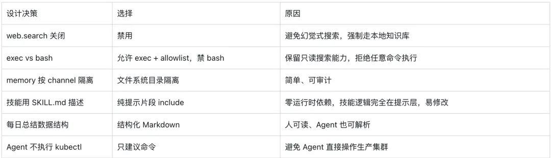 web.search 关闭,web.fetch 开启:强制 Agent 优先走本地知识,必要时才 fetch 指定 URL,避免幻觉式搜索。