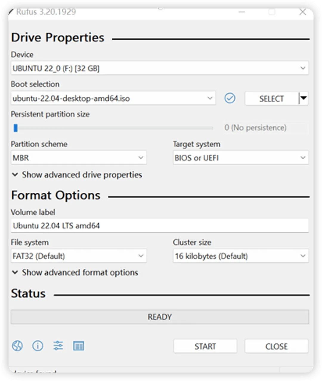 第一次启动建议准备一个使用一个 8G 以上的 U 盘,通过 rufus 工具烧录一个 ubuntu 系统。