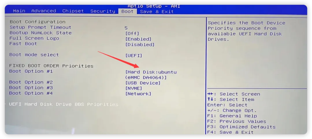 烧录完成后将 U 盘插入 Lattepanda IOTA 的任意一个 USB3.2 的接口,然后插电开机后,快速按下 F7 ---直到看到 Boot Device Selection Menu 界面,然后选择 USB 启动。