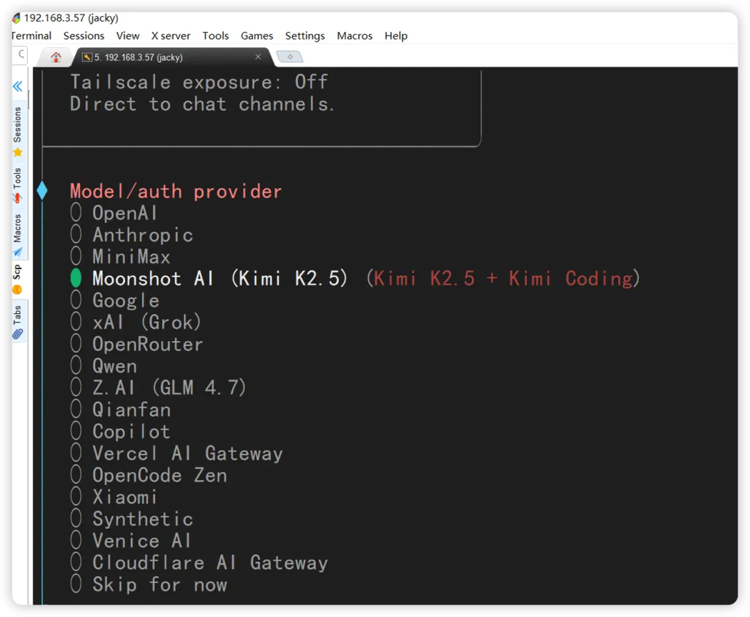 我这里选择了 Moonshot 的 AI,就是 Kimi2,