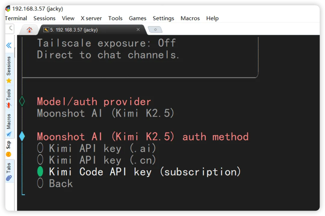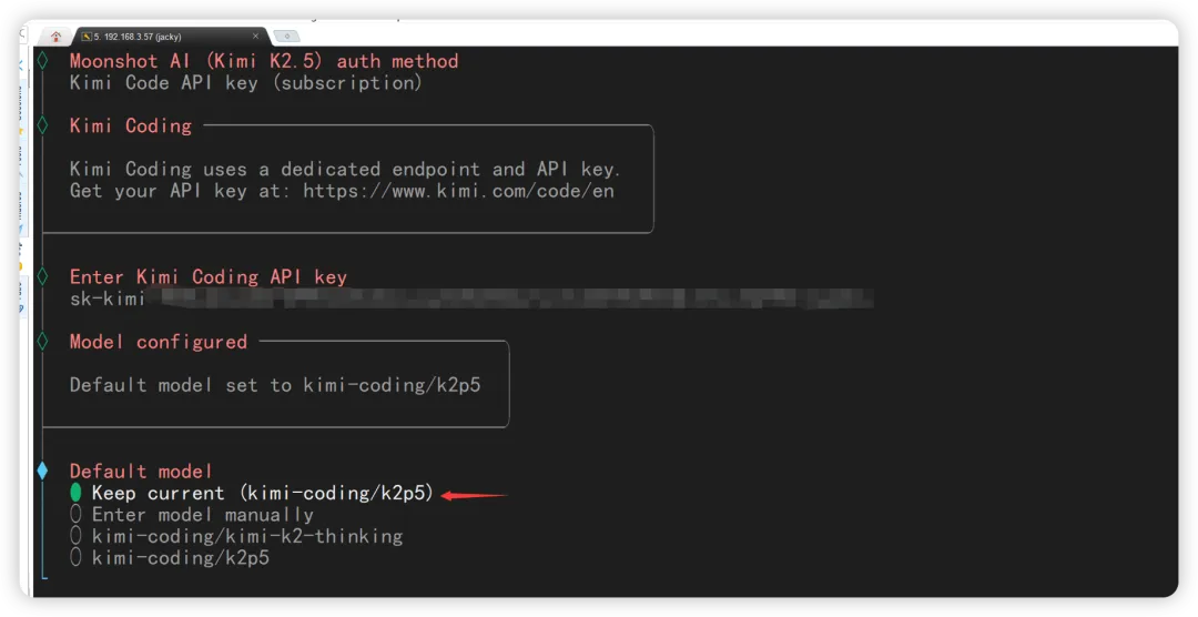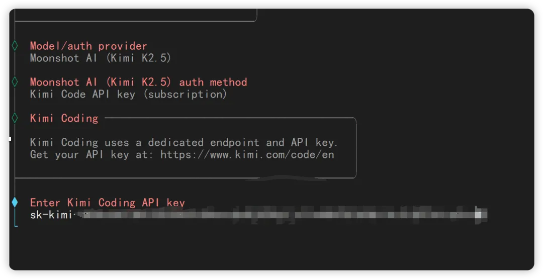 我选择 Kimi Code API Key。