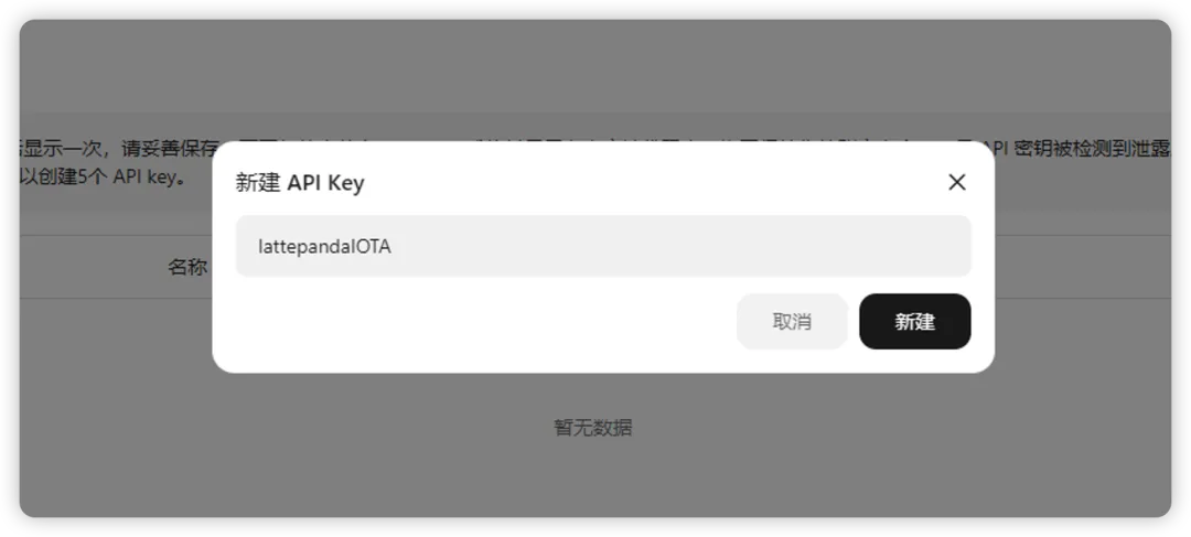 后台创建新的 API key,