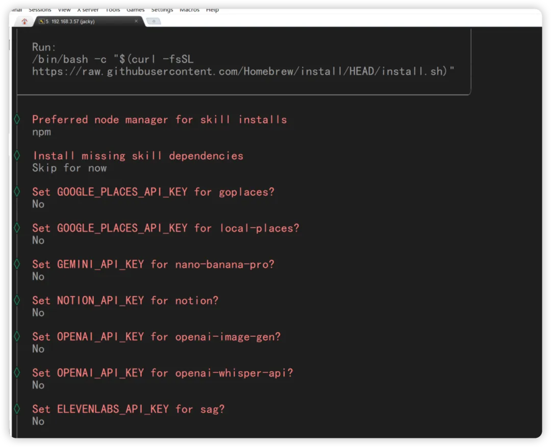 后面的都是要 api 的 key,如果没有就都选择 NO。