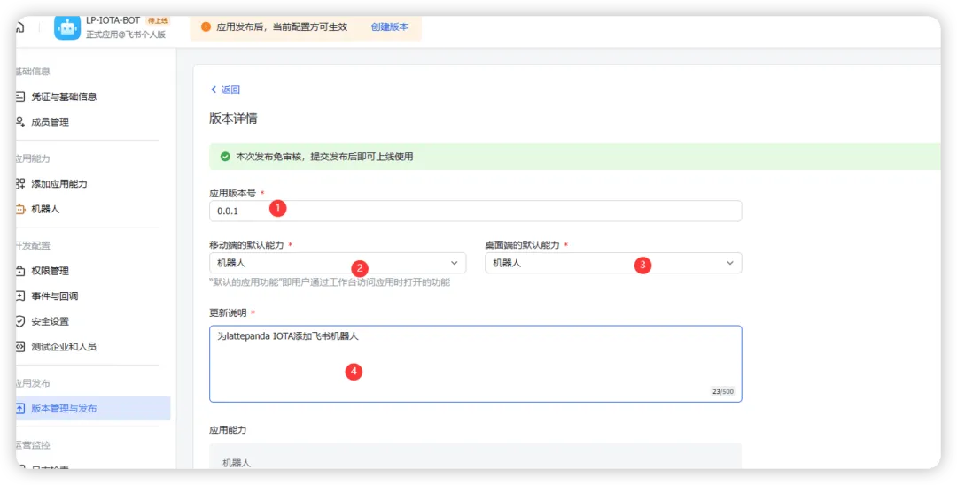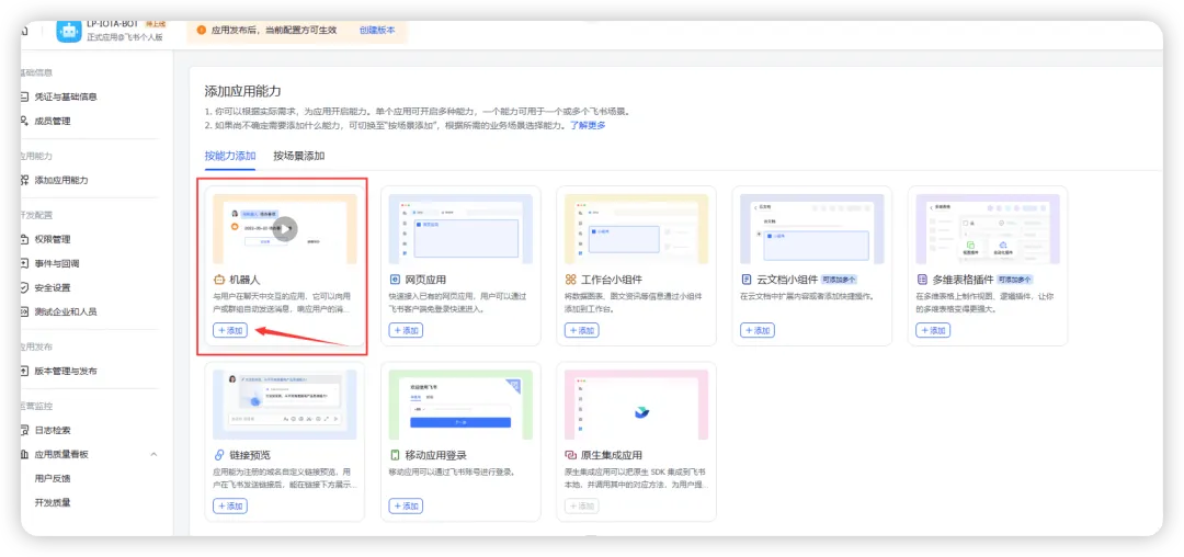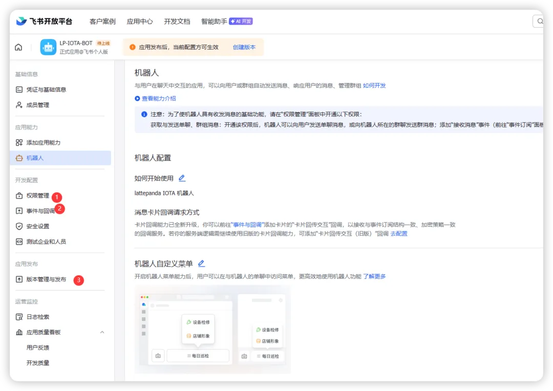下面配置飞书机器人的配置: