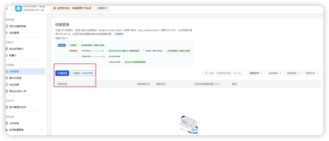去开通权限。