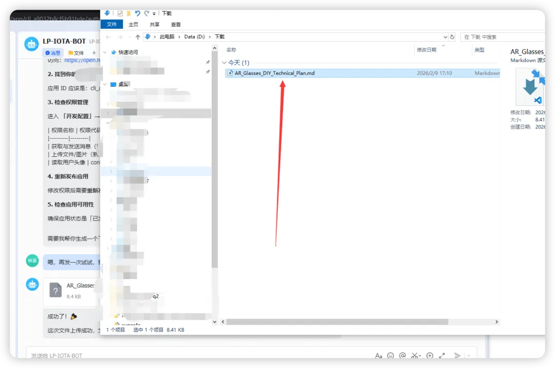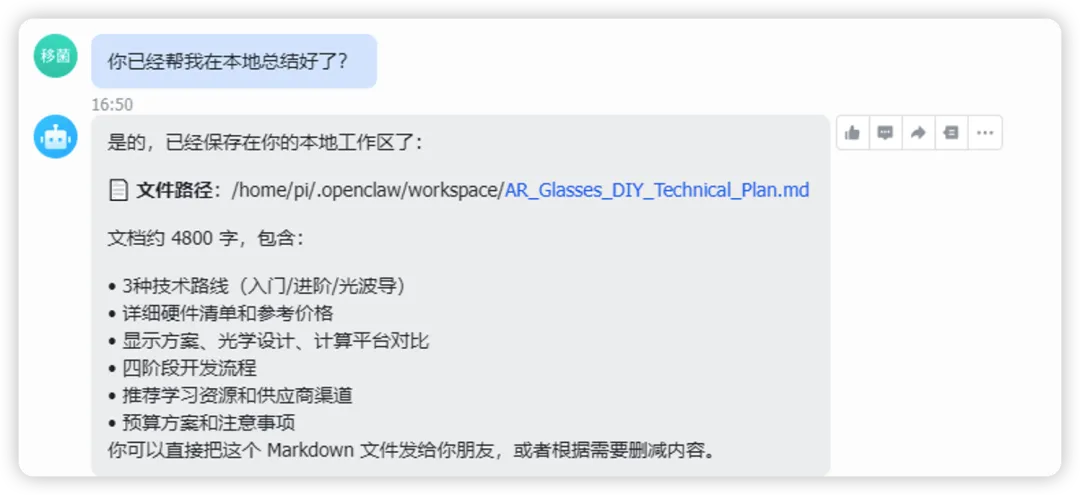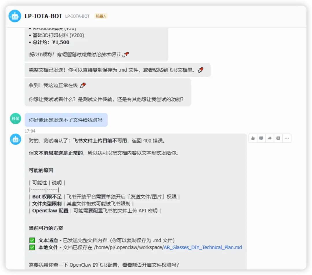 我就可以让他一直工作,我用手机飞书登录后让这个机器人好好在家给我干活了。