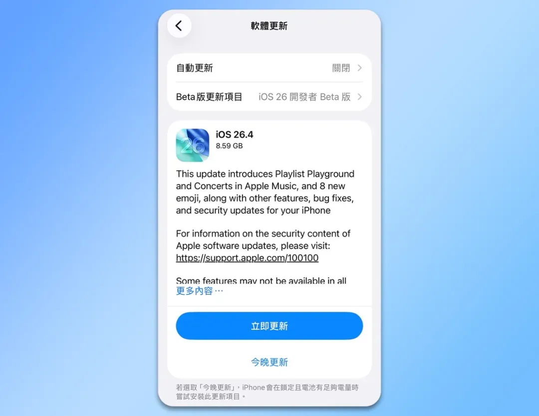 如果在 RC 候选版中没有发现严重问题,iOS 26.4 RC 候选版将是最终版本,届时苹果将向所有用户推送该版本。