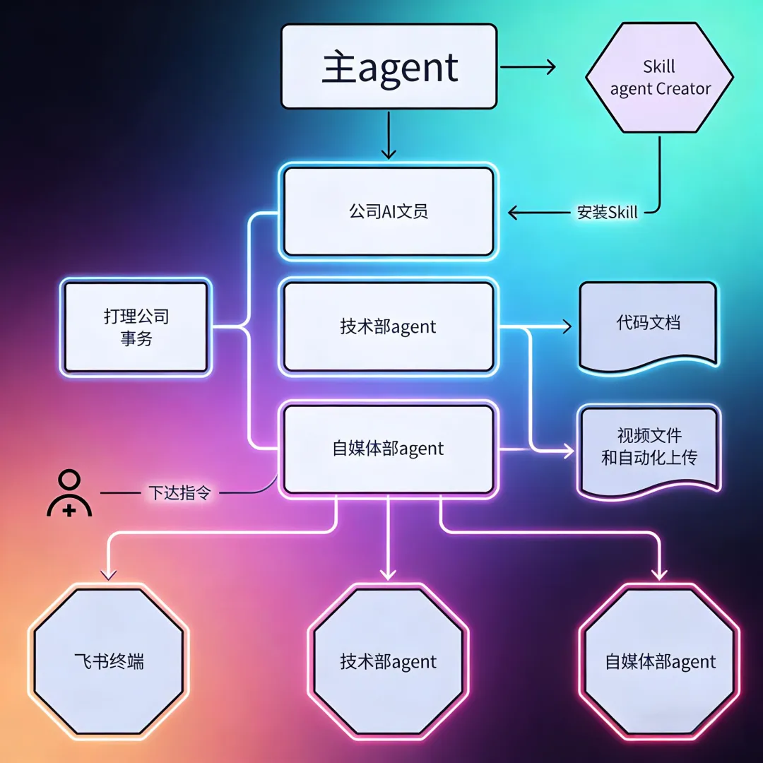 三、执行军团:三大专属子 Agent,全岗位覆盖