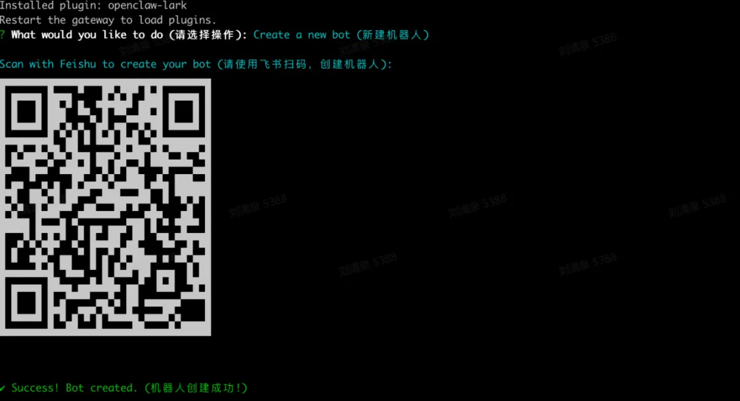 npx -y @larksuite/openclaw-lark install2、执行过程中,可选择 新建机器人 或关联已有机器人。