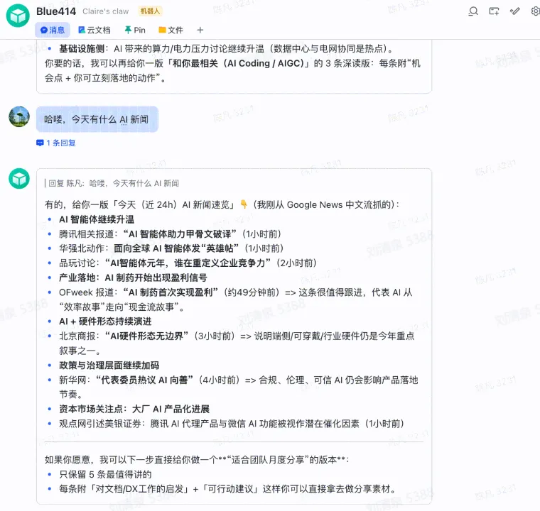 openclaw config set channels.feishu.footer.elapsed true# 开启耗时openclaw config set channels.feishu.footer.status true# 开启状态展示只有 @机器人 才回复,可响应群内任何人发送的消息