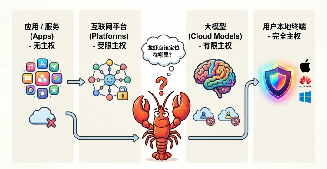 这一格局揭示了核心真理:无论大模型算力多强、平台流量多大,最终都要通过终端触达用户;用户主权的完整度,与 Agent 离终端的距离成反比,离用户越近,主权越完整。