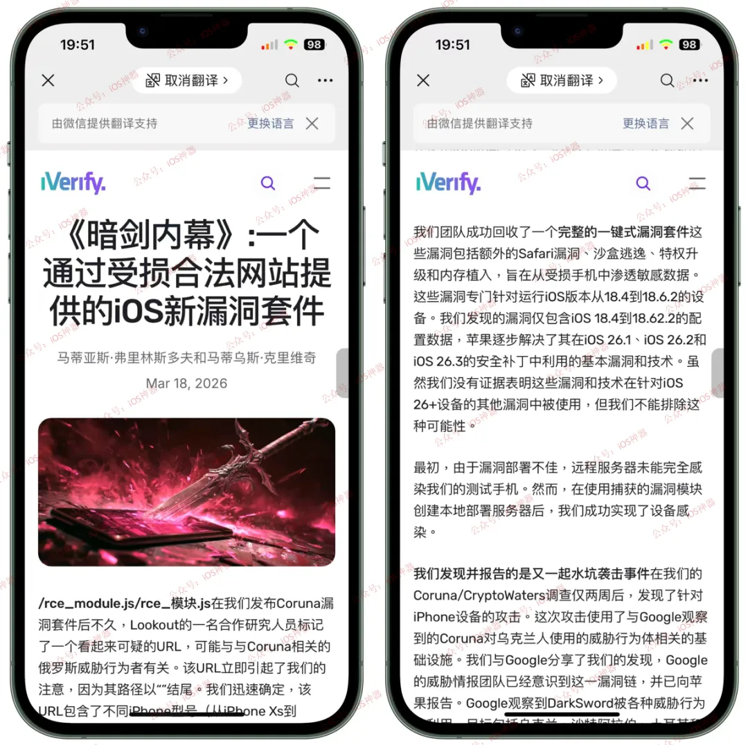 第一个是 Coruna 漏洞:新漏洞 Coruna 工具突然发布!支持iOS 13/17.2.1,opa334大佬回归!