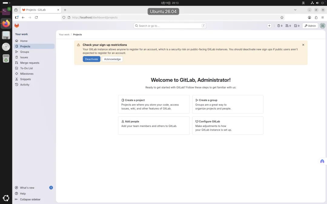 本文详细介绍了在 Ubuntu 26.04 系统上通过 Omnibus 包方式安装 GitLab CE 的完整流程。相比 Docker 方式,原生安装具有以下优势: