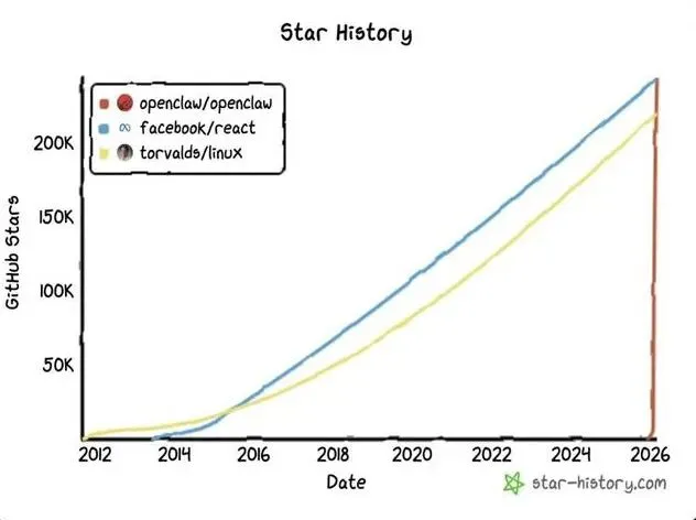 OpenClaw是今年科技圈最火的AI Agent开源项目。从一个小众工具到GitHub星数突破25万,它超过React成为最受关注的非聚合类开源项目 ,速度快得让整个行业都没反应过来。