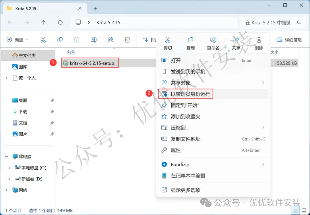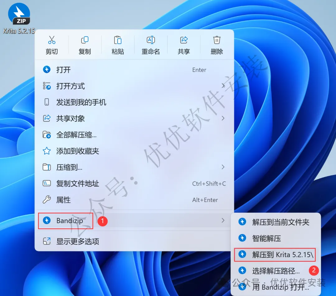 1、下载Krita 5.2.15软件安装包到电脑上,右键选择【解压到Krita 5.2.15\】