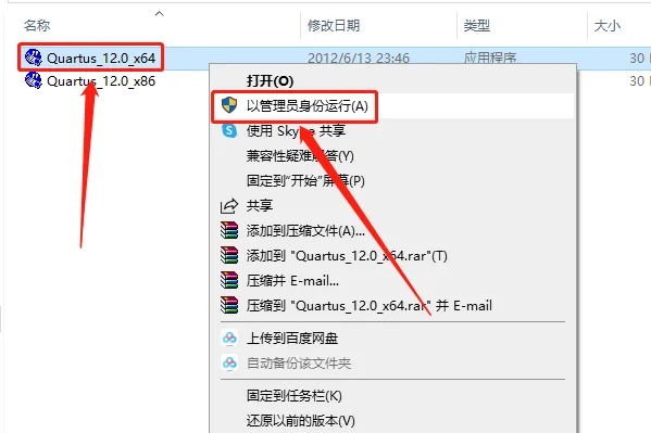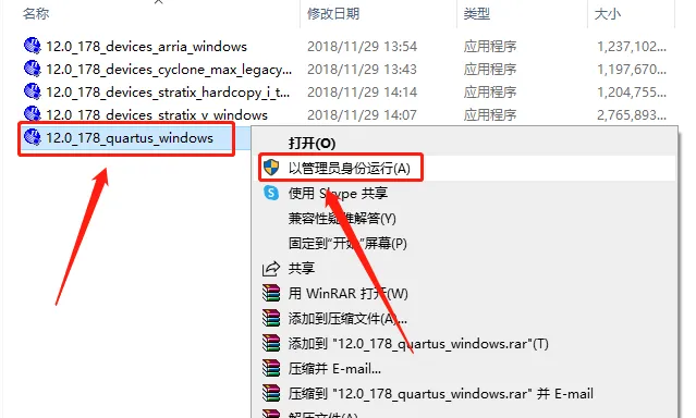 5.鼠标右击【12.0_178_quartus_windows】安装程序,选择【以管理员身份运行】。