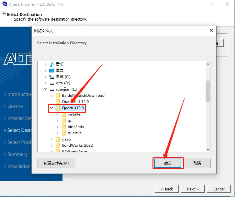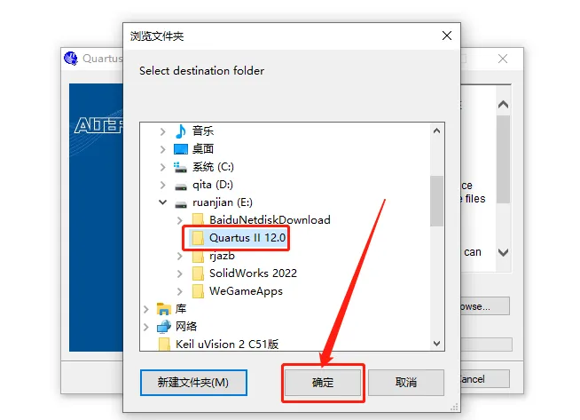 13.可以在E盘或者其它磁盘里创建一个新的文件夹(创建的文件夹必须是英文名,而且不能有空格),选中后点击【确定】。
