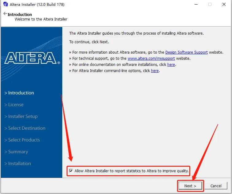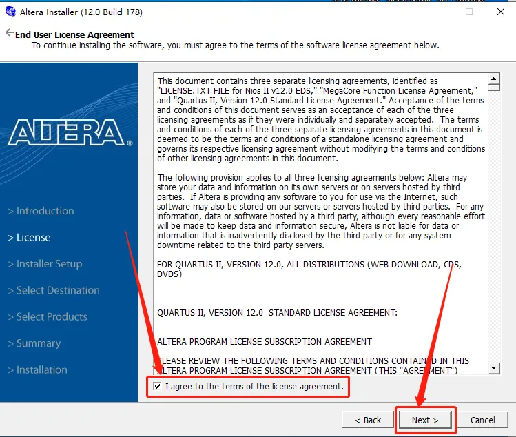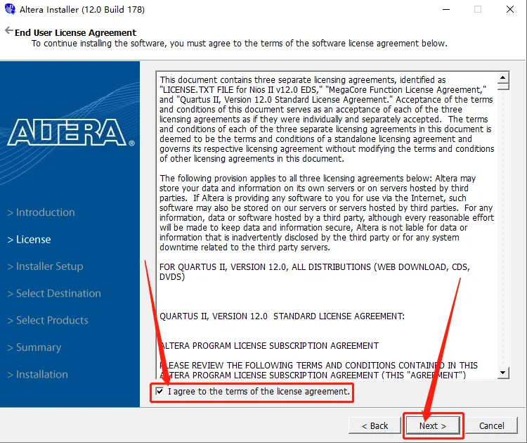 10.勾选【Allow Altera Software···】,然后点击【Next】。