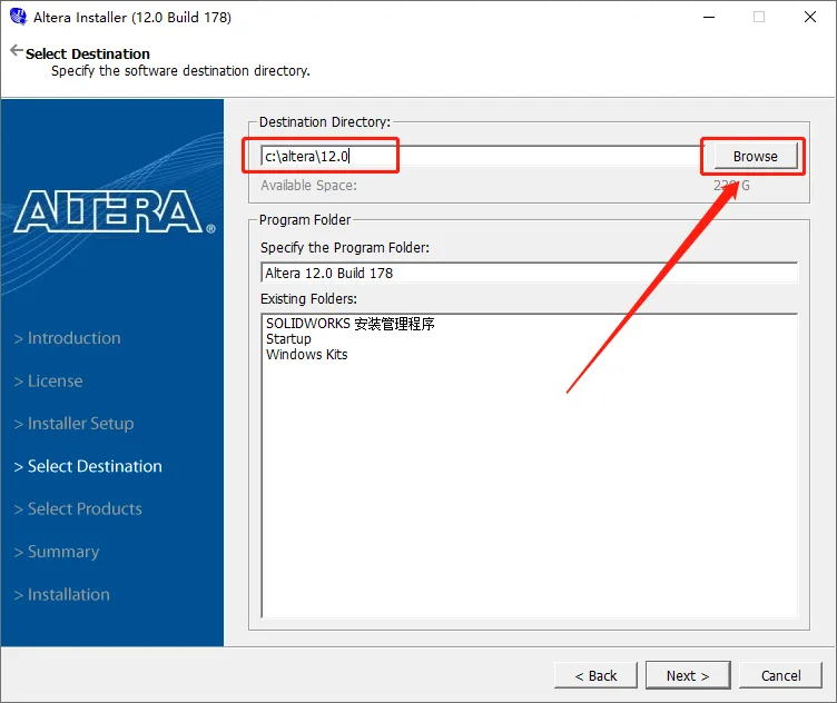 12.点击【Browse】设置软件的安装路径,建议安装到除C盘以外的磁盘里。