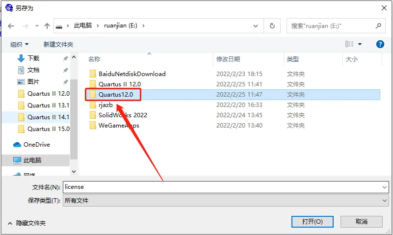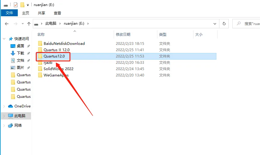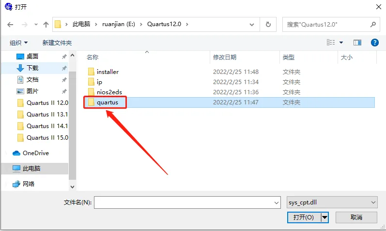 22.返回到解压的【Quartus II 12.0】文件夹中,然后打开【Quartus】文件夹。