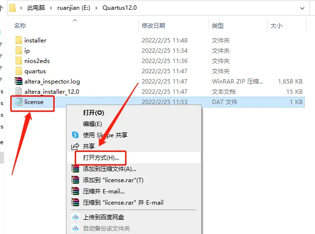 52.鼠标右击【license】许可证文件,然后点击【打开方式】。