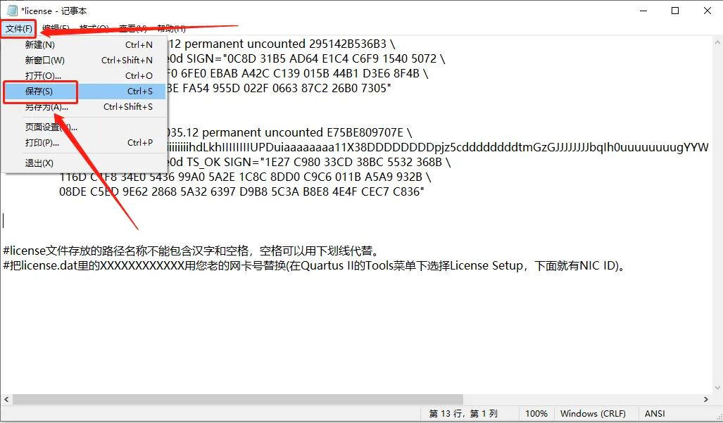 56.点击左上角的【文件】,然后点击【保存】,最后关闭许可证文本。