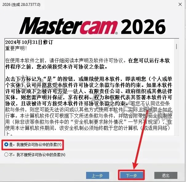 9.勾选 是 我接受......然后点击 下一步。