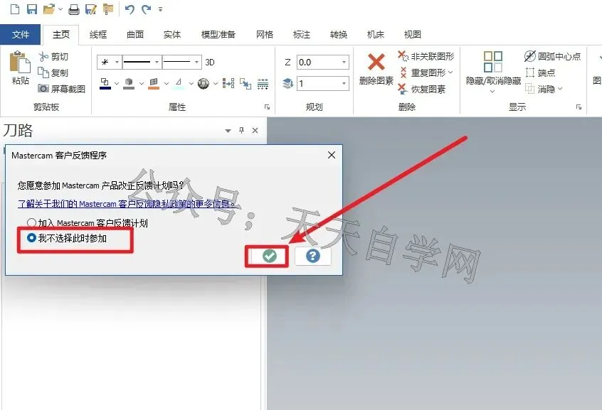 24.勾选 我不选择此时参加,然后点击确定。