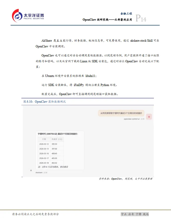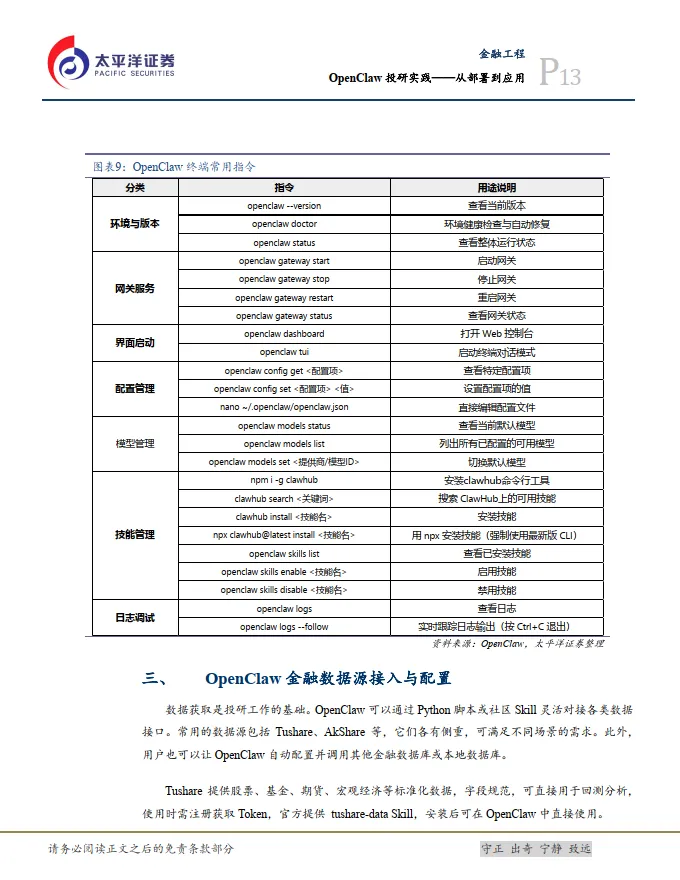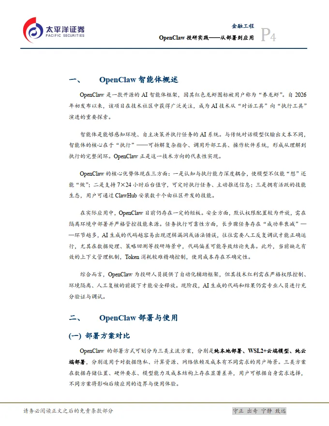 OpenClaw作为开源AI智能体框架,正在从对话工具向执行工具演进。本文从投研应用角度出发,介绍了OpenClaw的部署方案、数据源接入以及投研应用场景实践。