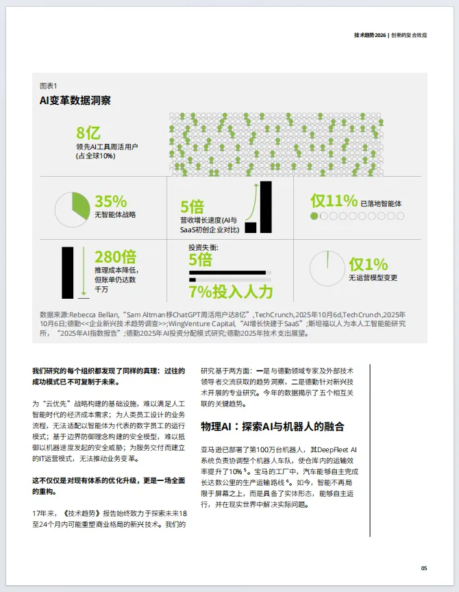 企业正从过去的AI概念验证、试点探索,转向如今的规模化生产应用。然而,仅对现有流程进行自动化改造已无法实现差异化竞争,企业需从根本上重新设计业务流程,将技术投资与业务成果紧密绑定。例如,在制造业中,部分领先企业通过部署具备自主感知能力的物理AI系统,将生产线调试周期缩短60%,同时实现质量缺陷率下降45%。